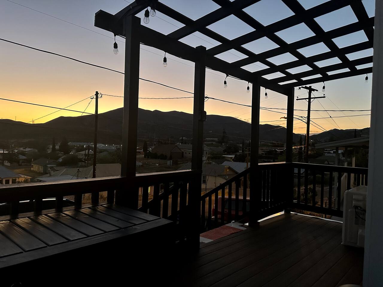 The Red Door Bungalow is an elevated modern bungalow in Bisbee, AZ, offering mountain views and a stylish blend of modern design with retro touches.